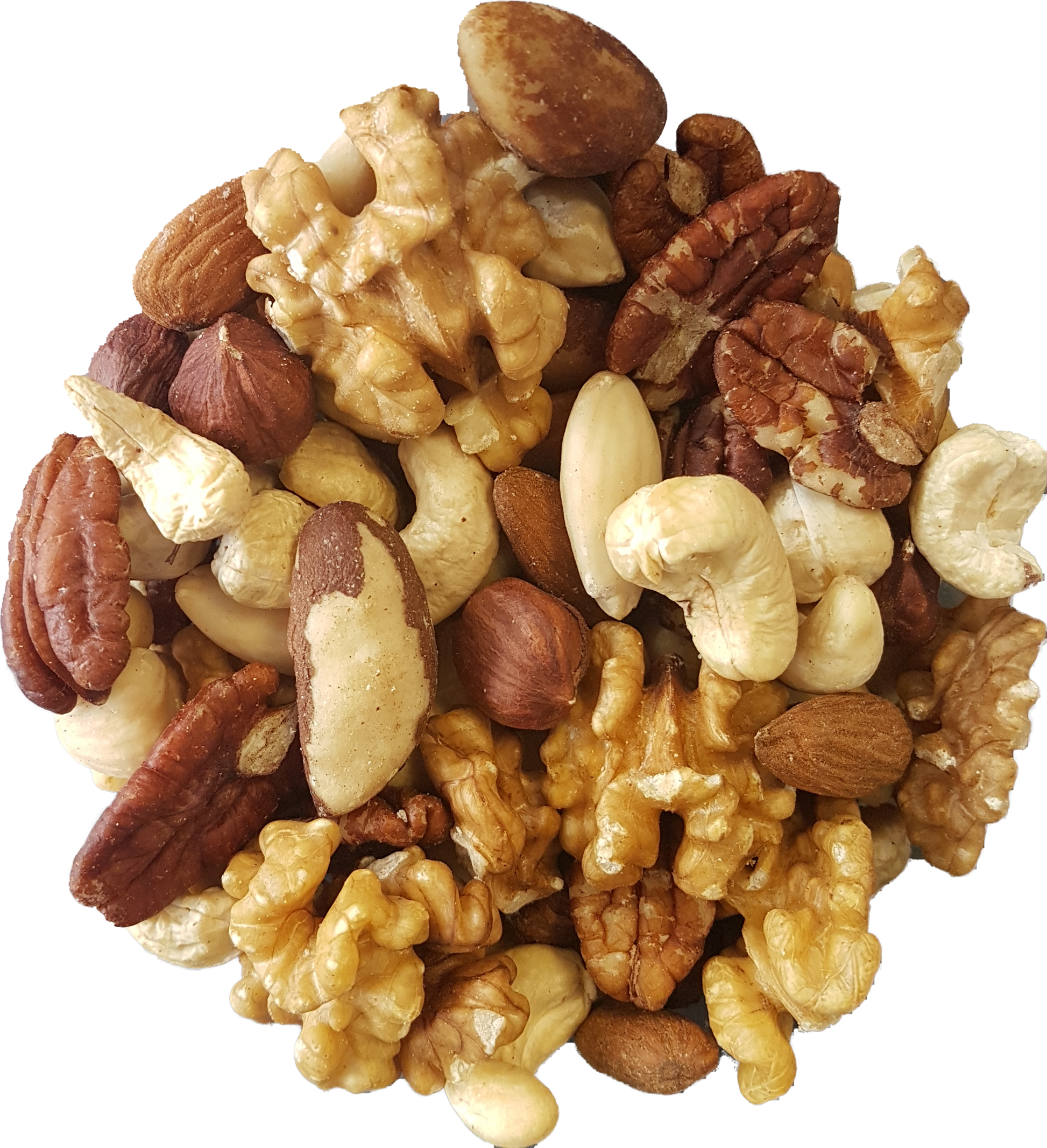 Ongebrande mix van noten in hun pure vorm. Ideaal om zelf te roosteren of te gebruiken in baksels en gerechten.
